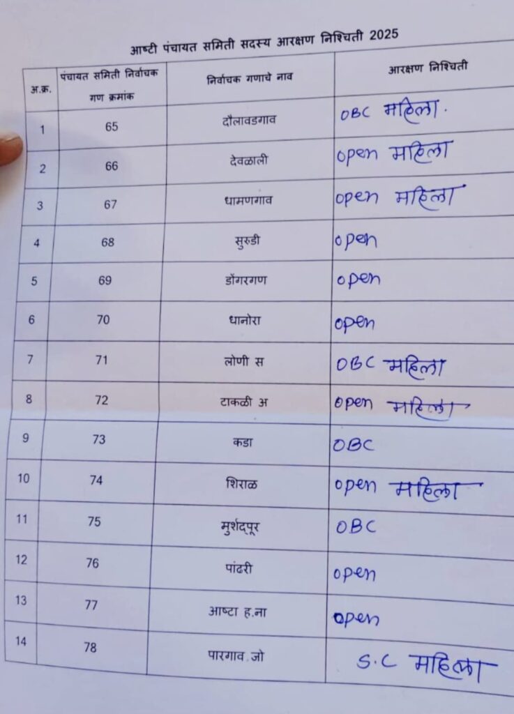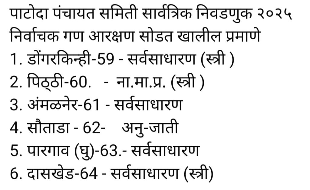 पाटोदा पंचायत समिती अंतर्गत निवडणुकीत हे आरक्षण ठरवण्यात आले: